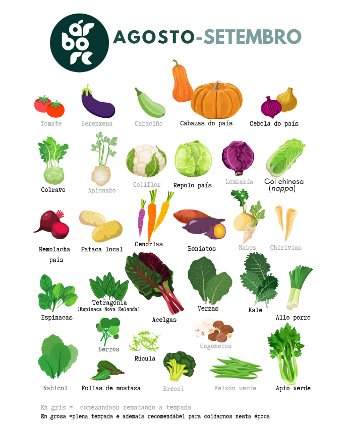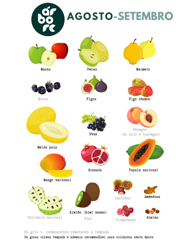 Un dos principios básicos do consumo consciente é botar man, sempre que sexa posible, de produtos de proximidade e de tempada. Con este obxectivo en mente, preparamos unhas fichas para que saibas que froitas, verduras e hortalizas se colleitan nesta época do ano.